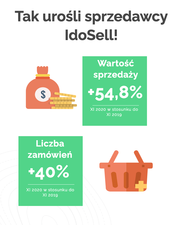 W listopadzie 2020 sklepy, które korzystają z rozwiązania IdoSell otrzymały 5,2 mln zamówień na kwotę 1,2 mld zł. GMV sprzedawców do Polski było wyższe o 73,49 proc, a poza Polskę o 49,90 proc. Te imponujące liczby wynikają m.in. z filozofii IdoSell, która polega na nieustannym dostarczaniu merchantom rozwiązań zwiększających ich sprzedaż.